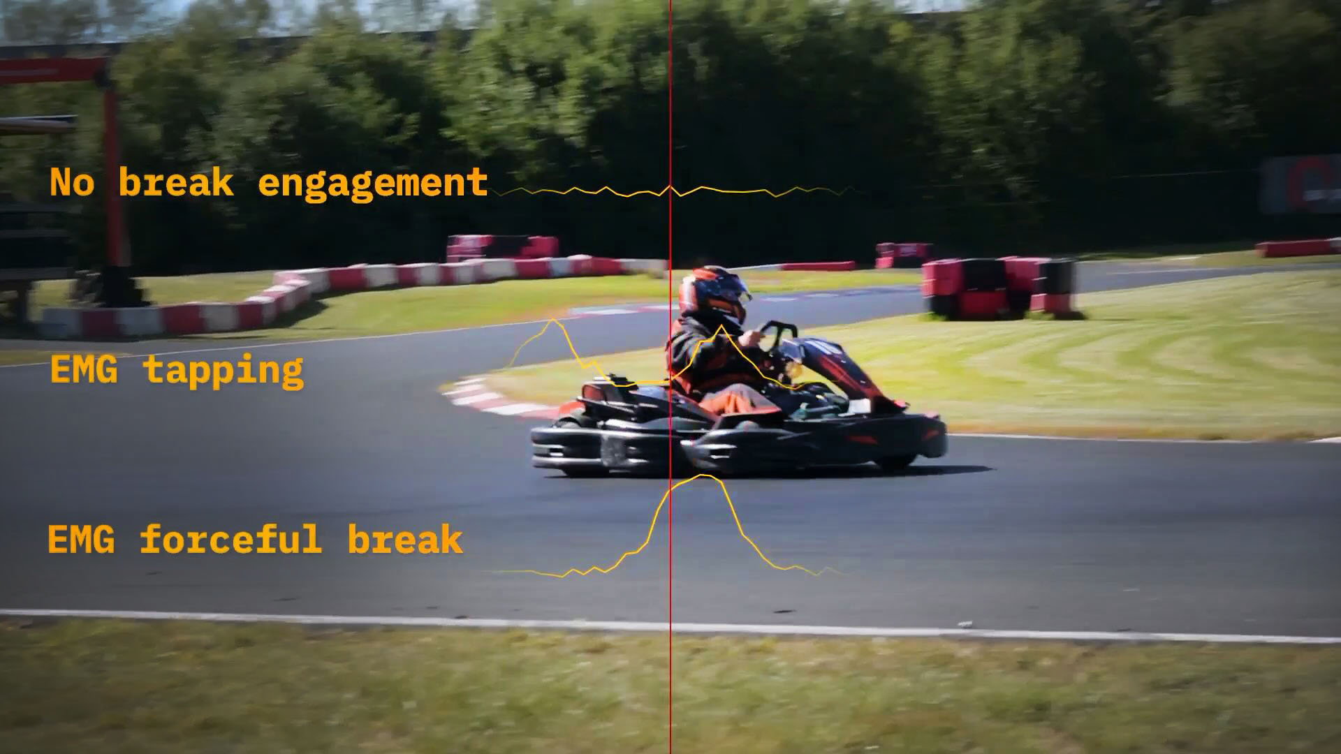 We took eye-tracking glasses, EMG sensors, a respiration belt, and ECG monitoring to the go-kart track to measure driver attention, stress, arousal, and braking behavior in a real driving scenario.