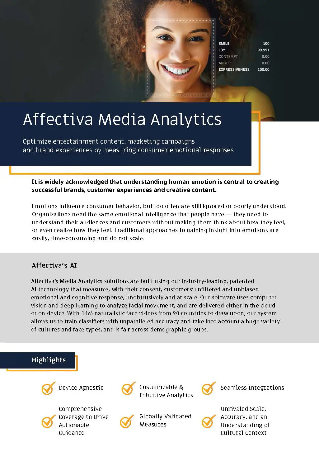 Product sheet for Affectiva Media Analytics.
